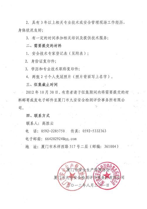 1、安全技术专长包括具体的安全领域(安全标准化、安全管理、职业卫生、安全社区、法律法规、教育培训)及所涉及的行业;