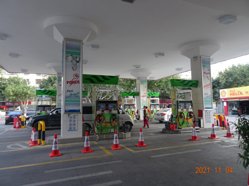 石狮市翠湖石化有限公司(加油站)位于福建省泉州市石狮市南洋路振狮开发区边,该加油站北侧为香江路,东侧为南洋路,南侧为建明汽车美容店(三类保护物)和民用建筑(三类保护物),西侧为钢材加工厂房(明火地点或散发火花地点),南侧有一架空通信线经过。 该加油站油罐区设有4个埋地卧式SF双层油罐,其中容量为30m3的0#柴油罐1个,容量为30m3的92#汽油罐1个,容量为30m3的95#汽油罐1个,容量为30m3的98#汽油罐1个,折合油罐总容积为105m3(柴油罐容积折半计入油罐总容积),为二级加油站。该加油站设有汽油卸油和加油油气回收系统。 |