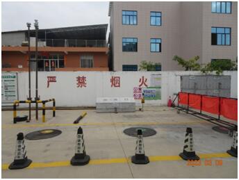 该加油站位于南安市洪濑镇谯琉村省道307线55公里750米处,站区占地面积约950m2。该加油站东侧为省道307线(主干路),北侧为他人厂房(绣花厂,丙类厂房)、民用建筑(三类保护物)和停车棚(三类保护物),西北侧为绣花厂杂物间(三类保护物),西侧和西南侧为民用建筑(三类保护物),南侧为村道、隔村道为民用建筑(三类保护物)。站区南侧为进站的架空电力线经过,未跨越加油作业区(加油站站区总平面布置情况见附图)。 该加油站内按功能分区设有站房、加油罩棚、油罐区;发电机房和配电间设于站房内。 该加油站油罐区设有4个埋地卧式双层油罐,其中容量为20m3的0#柴油罐1个,容量为30m3的92#汽油罐1个,容量为30m3的95#汽油罐1个,容量为30m3的停用罐1个(原储存0#柴油,现已注水停用),折合油罐总容积为70m3(柴油罐容积折半计入油罐总容积,停用罐容积未计入总容积),为三级加油站。该加油站设有汽油卸油和加油油气回收系统。 |