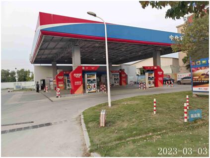 中化(福建)石油销售有限公司龙海颜厝加油站站址位于龙海市颜厝镇上洋村塔尾路口,于2022年7月14日经漳州高新技术产业开发区市场监督管理局批准取得《营业执照》{统一社会信用代码:91350681570968531Y};于2022年05月25日经漳州高新技术产业开发区应急管理局批准取得《危险化学品经营许可证》,证书编号:闽漳危经[2016]00069(换)号,有效期至2025年06月01日;于2018年12月06日经漳州市商务局批准取得《成品油零售经营批准证书》,编号:油零售证书第963038号,有效期至2023年12月06日,许可经营范围:汽油、柴油零售。 该加油站加油罩棚下设有加油机4台(均为4枪),油罐区设有S/F双层卧式储油罐5个。其中包括:92#汽油罐1个,容积为30m3,95#汽油罐2个,容积均为10m3,0#柴油罐2个,容积分别为15m3和30m3,即折合油罐总容积72.5m3(柴油罐容积折半计入油罐总容积),根据《汽车加油加气加氢站技术标准》GB50156-2021的等级划分标准,该加油站划为三级加油站。 |