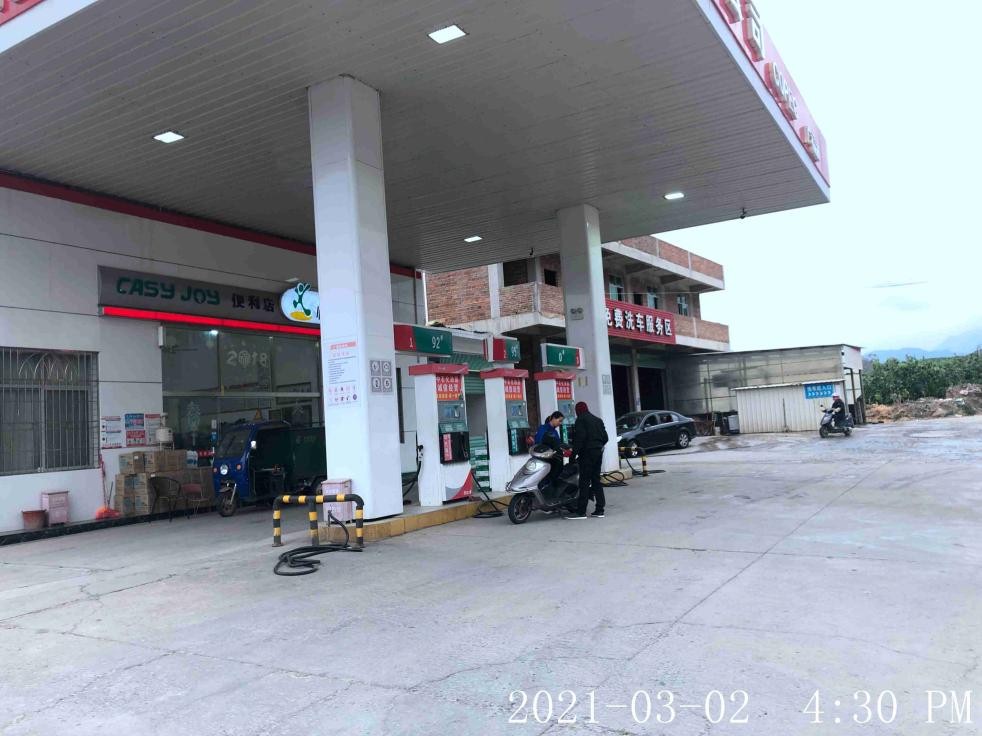 平和县广福加油站位于平和县九峰镇福田村福田大山中心岗,于2018年3月19日经平和县工商行政管理局批准取得《营业执照》{统一社会信用代码:91350628058427875A};于2018年04月17日经漳州市安全生产监督管理局批准取得《危险化学品经营许可证》,登记编号:闽漳危经【2015】00040(换)号,有效期至2021年06月10日;于2018年08月24日经漳州市商务局批准取得《成品油零售经营批准证书》,编号:油零售证书第963190号,有效期至2023年08月24日,许可经营范围:汽油、柴油零售。 该加油罩棚下设有加油机3台(均为单枪),油罐区设有S/F双层卧式储油罐3个,其中包括95#汽油罐1个,容积为25m3;92#汽油罐1个,容积为25m3;0#柴油罐1个,容积均为25m3;即折合油罐总容积为62.5m3(柴油罐容积折半计入油罐总容积),根据《汽车加油加气站设计与施工规范(2014版)》GB50156-2012的等级划分标准,该加油站划为三级加油站。 |