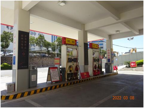 中国石油天然气股份有限公司福建厦门鹭岭加油站(以下简称“鹭岭加油站”),位于厦门市莲前街道岭兜北片区72号。该加油站于2004年首次取得危险化学品经营许可证,于2018年9月份完成油罐内衬改造。该加油站持有危险化学品经营许可证,有效期至2022年6月1日,证书编号:闽厦危化经字[2013]000028号。 该加油站现有主要设施包括:站房1座(内设:便利店、办公室、配电室、工具间、储藏间等)、一座加油棚、一个埋地油罐区。加油棚下设2座加油岛,共2台单机四枪加油机。油罐区设有2个25 m3(实际罐容为23.78 m3,圆整25 m3)汽油罐和1个废弃罐,折合油罐总容积50m3,为三级加油站。该站设有卸油和加油油气回收系统, 该加油站现有员工6人,危险化学品经营单位主要负责人赵学臣及安全生产管理人员牛建玫已取得安全生产知识和管理能力考核合格证,并处于有效期内。 |