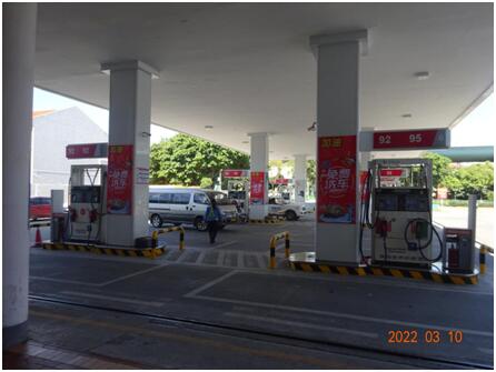 厦门市建坤诚益石化有限公司集美加油站(以下简称“集美加油站”),位于厦门市集美区同集南路208号。该加油站于2021年11月8日运营单位由中国石化销售有限公司福建厦门集美加油站变更为厦门市建坤诚益石化有限公司集美加油站。该加油站持有危险化学品经营许可证,证书编号:闽厦危化经字[2013]000032号,有效期至2022年5月13日。 该加油站现有主要设施包括:站房(内设:便利店、营业室、办公室、配电室、发电机房、卫生间、活动室、值班室等)、一台自助洗车设备、一座加油棚、一个埋地油罐区。加油棚下设6座加油岛,加油岛上设加油机,分别为3台单机四枪加油机和3台单机两枪加油机。油罐区设有4个埋地卧式S/F双层油罐,分别为3个为50m3汽油罐和1个50m3柴油罐,该加油站折合油罐总容积(柴油罐容积折半计入)175m3,为一级加油站。该加油站设有加油和卸油油气回收系统。 该加油站现有员工13人,危险化学品经营单位主要负责人徐中满及安全生产管理人员吴燕惠已取得安全生产知识和管理能力考核合格证,并处于有效期内。 |