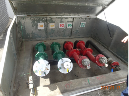 南安市东田南同加油站位于南安市东田镇四面佛县道305线50公里300米处(南同公路旁),站区占地面积为1800m2。该加油站西北面为南同公路,东北面为民用建筑(三类保护物)及幼儿园(一类保护物),东南面为水塘,西南面为益湖饭店(三类保护物)。站区周围50m范围内没有重要公共场所和大型建筑物。加油站西北面和西南面分别有一架空电力线经过,均未跨越加油作业区;站区东北面和东南面均有一进站架空通信线经过(加油站平面布置情况见附图)。 该加油站已取得泉州市安全生产监督管理局核发的《危险化学品经营许可证》,登记编号:闽泉南危经 [2006]000188(换),有效期:2015年10月19日至2018年10月18日。 该加油站内按功能分区设有站房、加油罩棚、油罐区;其中油罐区设置于加油罩棚下。 该加油站油罐区设有4个埋地卧式油罐,其中容量各为30m3的0#柴油罐2个,容量为30m3的92#汽油罐1个,容量为30m3的95#汽油罐1个,折合油罐总容积为90m3(柴油罐容积折半计入油罐总容积),为三级加油站。该加油站已设置汽油卸油和加油油气回收系统。 |