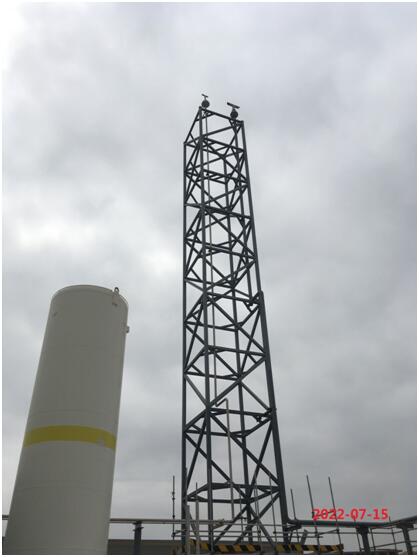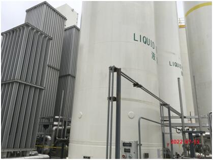 该公司压缩厂房和动力控制中心(配电室)、变电所等合建,液体储存、气化和输送区域布置在东面靠近卸车区域,以方便卸车。管廊沿液体储存、气化和输送区域西面往北,和晋华公司厂内全厂主管廊交接。大宗气站2(GY2)布置在东面,靠近晋华公司厂内11号路,方便槽车进入。大宗气站1(GY1)(内设有控制室、配电室、压缩机房和变电所等)、大宗气站2(GY2)(内设有氢气拖车间、氦存放间及氢气纯化室)和大宗气站2(GY2)南侧设有1个30m³的高压液氮罐(氢气纯化冷源);该公司储罐区共设置了7个储罐,其中2个100m³的高压液氧罐、1个2000m³的低压液氮罐、1个200m³的高压液氮罐、1个150m³的高压液氮罐、1个50m³的高压液氩罐、1个30m³的液态二氧化碳储罐。