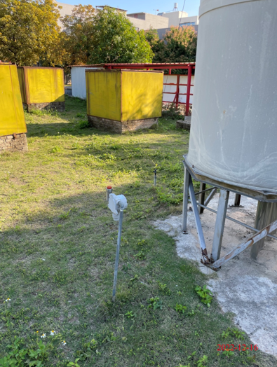 生产区布置有甲类埋地储罐区、消防水池、甲类仓库一、甲类仓库二、生产车间、丙类仓库、全厂低压配电室和清净下水池。生产车间东侧、北侧、西北侧、西侧分别为丙类仓库、甲类仓库一、甲类埋地储罐区、甲类仓库二。丙类仓库与东侧围墙之间布置有空压机,丙类仓库内设置有生产车间低压配电室(采用防火墙分隔)。甲类仓库一和甲类仓库二各分隔成3个防火分区。甲类埋地储罐区设置了6个埋地卧式储罐,单罐容积均为80㎥。