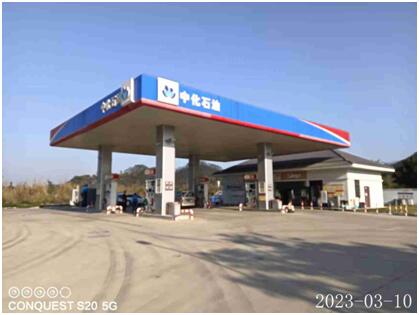 中化(福建)石油销售有限公司南靖东大路加油站站址位于福建省漳州市南靖县山城镇下潘村县道牛旧线(山旧线)8公里850米处,于2022年8月31日经南靖县行政审批局批准取得《营业执照》{统一社会信用代码:91350627MA34ALQA5F};于2022年9月29日经漳州市应急管理局批准取得《危险化学品经营许可证》,证书编号:闽漳危经【2019】00018(换)号,有效期至2025年8月25日;于2022年10月24日经漳州市商务局批准取得《成品油零售经营批准证书》,编号:油零售证书第963015号,有效期至2027年10月23日,许可经营范围:汽油、柴油零售。 该加油站加油罩棚下设有加油机4台(3台四枪,1台双枪),油罐区设有双层储油罐4个,其中0#柴油罐1个,92#、95#、98#汽油罐各1个,容积均为30m3,即折合油罐总容积为105m3(柴油罐容积折半计入油罐总容积),根据《汽车加油加气加氢站技术标准》GB50156-2021的等级划分标准,该加油站划为二级加油站。 |