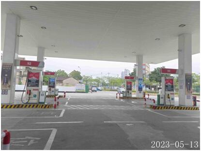 该加油站加油罩棚下设有加油机6台(均为2枪),油罐区设油罐4个(均为SF双层储油罐)。其中0#柴油罐1个,容积为30m3;92#汽油罐1个,容积为30m3;95#汽油罐1个,容积为20m3,98#汽油罐1个(现为备用罐),容积为20m3,即在用油罐折合油罐总容量为65m3(柴油罐容积折半计入油罐总容积),根据《汽车加油加气加氢站技术标准》GB50156-2021的等级划分标准,该加油站划为三级加油站。
