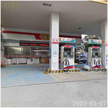 漳浦县霞美镇云霞加油站站址位于漳浦县霞美镇云霞路164号,于2018年7月20日经漳浦县市场监督管理局批准取得《营业执照》{统一社会信用代码:91350623733635601X};于2021年3月31日经漳州古雷港经济开发区应急管理局批准取得《危险化学品经营许可证》,证书编号:闽漳古危经【2021】002号,有效期至2024年4月15日;于2018年8月3日经漳州市商务局批准取得《成品油零售经营批准证书》,编号:油零售证书第963139号,有效期至2023年8月3日,许可经营范围:汽油、柴油零售。 本次勘查现场,该加油站加油罩棚下设有加油机2台(1台4枪,1台2枪),油罐区设有双层油罐2个,1个0#柴油罐为隔仓罐总容积为25m3(15m3+10m3),其中10m3柴油隔仓现停用;1个汽油罐为隔仓罐总容积为20m3(10m3+10m3),分别储存92#汽油和95#汽油;即该加油站折合油罐总容积为32.5m3(柴油罐容积折半计入油罐总容积),根据《汽车加油加气加氢站技术标准》GB50156-2021第3.0.9条的等级划分标准,该加油站划为三级加油站。 |