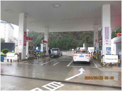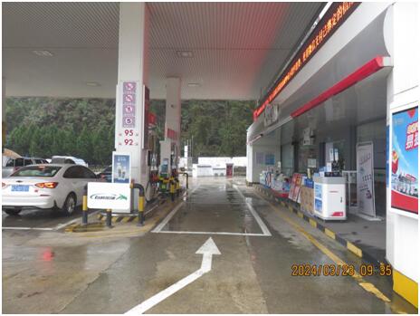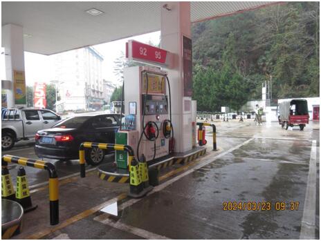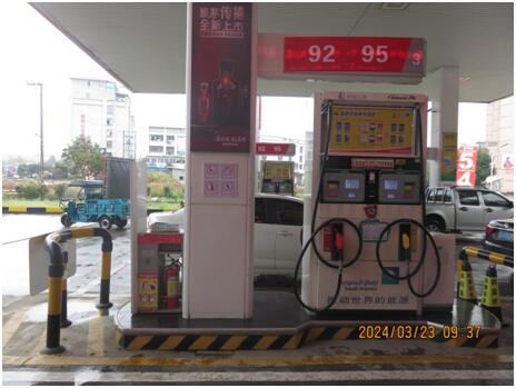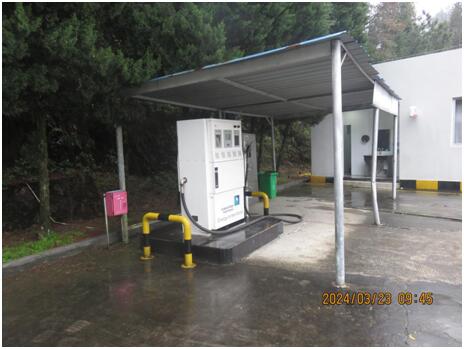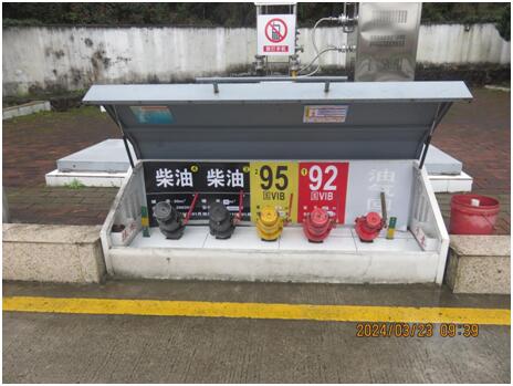 中石化森美(福建)石油有限公司宁德寿宁南阳加油站由加油作业区和辅助服务区组成。加油作业区内设有加油罩棚、站房、油罐区及罐车卸车停车位等,辅助作业区内设有辅助用房、站房,站房主要包括办公室、值班室、营业室、控制室等,辅助用房内有发电室、配电室等,站房、辅助用房均为单层建筑、耐火等级二级;加油罩棚下设4座加油岛,每座加油岛上设置1台单机4枪加油机,呈双排排列;油罐区设有4个埋地卧式油罐,分别为容积为30m3的95#汽油罐、92#汽油罐各1个,容积为30m3的0#柴油罐2个,折合油罐总容积(柴油罐容积折半计入)90m3,为三级加油站。 该加油站作业人员共8人。主要负责人张浩、安全员柳建辉经主管部门考核合格,持有危险化学品生产经营单位主要负责人及安全管理员考核合格证书。特种作业人员电工张浩持有特种作业员证。 |