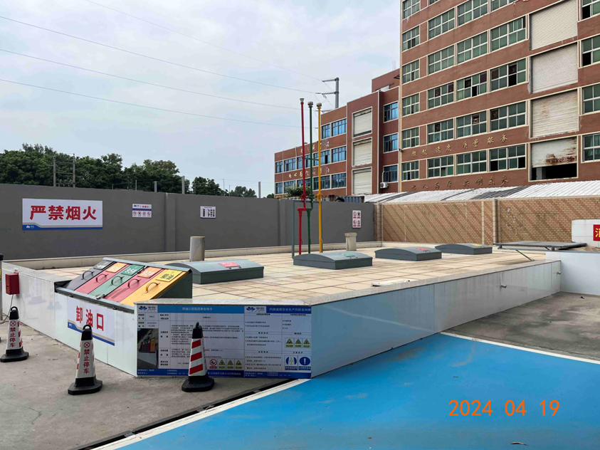 福建省晋江深沪首峰加油站位于晋江市深沪镇首峰村,加油站占地面积约1120m2。该加油站西南侧为县道328线(主干路),西北侧和东北侧均为晋江深户键升印刷有限公司用地,东为汽修厂(明火点),东南侧为停车场(三类保护物)。站区站区东南侧和西南侧均有架空电力线(杆高15m,有绝缘层)和架空通信线经过。架空电力线未跨越加油作业区(加油站站区总平面布置情况详见附图)。 该加油站已取得《危险化学品经营许可证》,编号:闽泉晋危经[2003]000179(换)号,有效期:2023年02月23日至2024年09月16日。 加油站内设有站房、加油罩棚、油罐区、洗车机和卫生间等。 该加油站油罐区设有4个埋地卧式SF双层油罐,其中容量为30m3的0#柴油罐1个,容量均为30m3的92#汽油罐2个,容量为30m3的95#汽油罐1个,折合油罐总容积为105m3(柴油罐容积折半计入油罐总容积),为二级加油站。该加油站设有汽油卸油和加油油气回收系统。 该加油站现有员工8人。 |