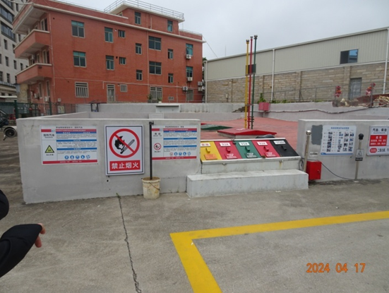 福建省晋江市新华石油加油站有限公司(加油站)位于福建省晋江市永和镇马坪村千祥园西128-1号,站区占地面积为5048.5m2。该加油站北侧为丙类厂房、机械零配件仓库(戊类仓库),南侧为县道328线,东侧为丙类厂房、民房(三类保护物)和杆装变压器,西侧为登惠酒店(民用建筑,一类保护物)和民房(三类保护物)。加油站站区东侧有一进站架空电力线和进站架空通信线,站区西侧有一进站架空电力线,均未跨越加油站的作业区。站区周围50m范围内没有重要公共场所和大型建筑物(加油站站区总平面布置情况详见附图2)。 该加油站已取得泉州市应急管理局颁发的《危险化学品经营许可证》,登记编号:闽泉晋危经[2003]000459(换),有效期:2023年05月16日至2024年08月02日。 加油站内按功能分区设有站房、加油罩棚、埋地油罐区、电动汽车充电区、停车区(15个停车位,三类保护物)和辅助区(设有一座杂物间和一个洗车棚)。 该加油站埋地油罐区设有4个室外埋地卧式油罐(双层钢制油罐),其中容量为50m3的0#柴油罐1个,容量为50m3的92#汽油罐2个,容量为50m3的95#汽油罐1个,折合油罐总容积为175m3(柴油罐容积折半计入油罐总容积),为一级加油站。该加油站已设置汽油卸油和加油油气回收系统。 |