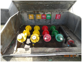 该加油站位于福建省南安市东田镇美洋村美洋街106号。该加油站西北侧为县道305线(主干路),东北面为民用建筑(三类保护物)及红蜻蜓幼儿园(一类保护物),东南面为水塘,西南面为益湖饭店(三类保护物)。站区周围50m范围内没有重要公共场所和大型建筑物。加油站西北面和西南面分别有一架空电力线经过,东北面和东南面均有一进站架空通信线经过,架空电力线和架空通信线均未跨越加油站的作业区。 该加油站原已取得泉州市应急管理局核发的《危险化学品经营许可证》,登记编号:闽泉南危经[2006]000188,有效期:2021年9月15日至2024年9月14日。 该加油站内按功能分区设有站房、加油罩棚、油罐区。 该加油站油罐区设有4个埋地卧式单层钢制油罐,其中容量均为30m3的0#柴油罐2个,容量为30m3的92#汽油储罐1个,容量为30m3的95#汽油储罐1个,折合油罐总容积为90m3(柴油罐容积折半计入油罐总容积),为三级加油站。该加油站已设置汽油卸油和加油油气回收系统。 |