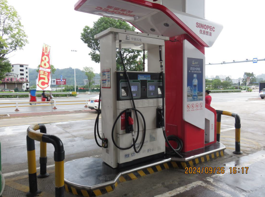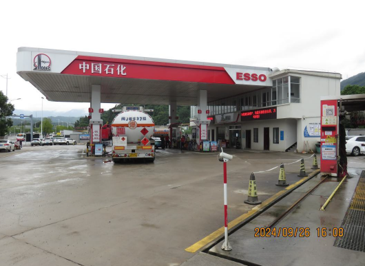 中国石化销售股份有限公司福建宁德廉坑加油站位于宁德市蕉城区 金涵乡廉坑村国道 104 线 2194 公里 300 米处,该站成立于2000 年 10 月 9 日,《营业执照》统一社会信用代码:91350900077415212D,企 业经济类型为外商投资企业分公司,负责人翁国贵;加油站站长翁凌翔, 现从业人员12人。该加油站近三年未发生生产安全事故,2024年9月,在 油罐区增设1台三次油气回收装置。2023年2月27日,经宁德市应急管理局 批准取得《危险化学品经营许可证》,证书编号:35090213202300005, 有效期至2024年10月18日,经营许可范围:汽油、柴油零售。2022年11月 23日,经评审合格,该加油站安全生产标准化三级达标。该加油站经营散装 汽油零售业务,未设置自助加油区。 该加油站周边50m范围内无重要公共建筑物,其北侧为架空电力线(有绝 缘层)、濂坑铁场,东侧为国道 104 线,隔国道104线为民房(三类保护物) 、管材堆场(丙类仓库),南侧为管材堆场(丙类仓库),西侧为架空数据线 和电力线(有绝缘层)、田地。 该加油站由加油作业区和辅助服务区组成。加油作业区内设有加油罩棚、 油罐区及罐车卸车停车位等,加油罩棚下共设4台加油机;罩棚西南侧为罐区, 设有汽油罐与柴油罐共4个,其中容积为30m³的92#汽油罐、95#汽油罐各1个、 0#柴油罐2个,均为地下直埋卧式双层罐,折合油罐总容积(柴油罐容积折半计 入)90m3,为三级加油站,该加油作业区现场未设置扫码支付。辅助作业区内 设有辅助用房、站房和洗车点(三类保护物),站房主要包括值班室、营业厅、 站长室、仓库(存放有便利店货物、矿泉水、尾气处理液、柴油机油等物品)组 成,辅助房内有配电室、卫生间、司机之家休息室、餐厅;辅助房东侧设有箱式 变压器;站区北侧设置自动洗车机;站房为地上二层建筑,辅助房为单层建筑、耐 火等级均为二级。 |