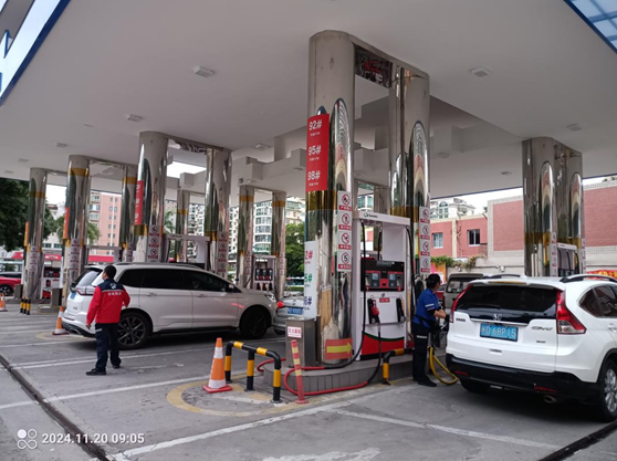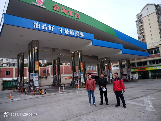 厦门发成石油化工有限公司金尚加油站(以下简称“金尚加油站”)位于厦门市湖里区金尚路798号。该站前身为福建闽海石化有限公司厦门第一加油站,于2024年8月20日变更为厦门发成石油化工有限公司金尚加油站;该站现有危险化学品经营许可证有效期至2027年03月11日,证书编号:闽厦危化经字〔2015〕000006号。 该加油站现有主要设施包括:一座站房(内设:便利店、办公室、会议室、卫生间等)、一座辅助用房(配电间、发电机房、杂物用房等租用民用建筑)、一座临时仓库、一座罩棚、一个埋地油罐区。其中罩棚下设5台单机4枪加油机和3台单机6六枪加油机;油罐区设有5个3DFF埋地双层卧式油罐,分别为4个30m³汽油罐、1个30m³柴油罐,折合油罐总容积135m³(柴油罐容积折半计入),该站为二级加油站,设有卸油和加油油气回收系统。 该加油站目前工作人员12人,法人林亚丽、站长郑超峰及安全生产管理人员曹建辉、林艺杰均已取得安全生产知识和管理能力考核合格证,并处于有效期内。 |