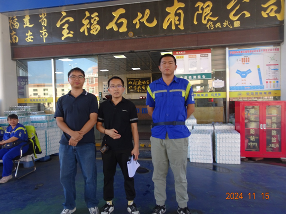 福建省南安市宝福石化有限公司(加油站)位于南安市康美镇草埔工业区省道307线45公里300米。该加油站的西北侧为省道307线(主干路),东北侧为餐饮店(三类保护物)和店面(三类保护物),东侧为水舞功夫店面(三类保护物)和聚锦购物广场(二类保护物),南侧为铝合金门窗厂厂房(丙类)和鞋底厂厂房(丙类),西南侧为民用建筑(三类保护物),加油站周边30m范围内未见架空电力线路和架空通信线路。 该加油站已取得泉州市应急管理局核发的《危险化学品经营许可证》,编号:闽泉南危经[2004]000250,有效期:2022年1月12日至2025年1月11日。 加油站内设有站房、加油罩棚、油罐区、洗车房、发配电房/卫生间等。 该加油站油罐区设有4个埋地卧式SF双层油罐,其中容积为50m3的0#柴油罐1个,容积均为50m3的92#汽油罐2个,容积为50m3的95#汽油罐1个,折合油罐总容积为175m3(柴油罐容积折半计入油罐总容积),为一级加油站。该加油站设有汽油卸油和加油油气回收系统,并于2024年增设三次油气回收装置。 该加油站现有从业人员15人。 |