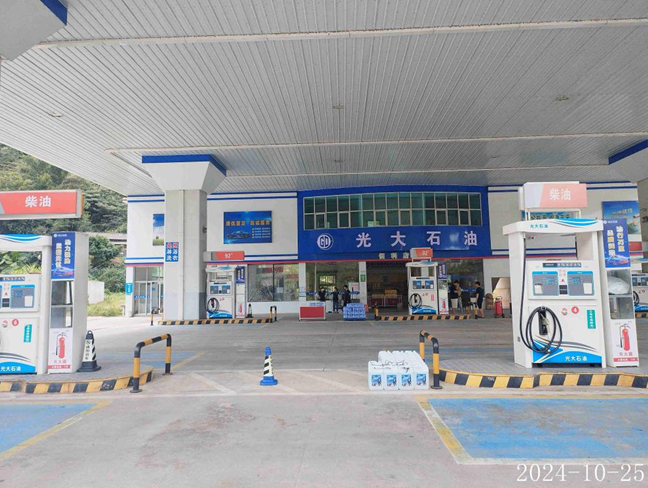 华安县光大石油化工有限公司(加油站)站址位于华安县丰山镇银塘村前宅(省道208西港线203公里300米),于2020年9月28日经华安县市场监督管理局批准取得《营业执照》{统一社会信用代码:91350629671923519T};于2023年04月04日经漳州市应急管理局批准取得《危险化学品经营许可证》,登记编号:闽漳危经〔2019〕00002号(换),有效期至2025年01月16日;于2021年06月03日经漳州市商务局批准取得《成品油零售经营批准证书》,编号:油零售证书第963085号,有效期至2026年06月02日,许可经营范围:汽油、柴油零售。 该加油站加油罩棚下设有加油机6台(均为2枪),油罐区设有双层埋地卧式储油罐4个。其中0#柴油罐2个,容积分别为50m3和30m3;92#汽油罐1个,容积为50m3;95#汽油罐1个,容积为20m3,即折合油罐总容积为110m3(柴油罐容积折半计入油罐总容积),根据《汽车加油加气加氢站技术标准》GB50156-2021的等级划分标准,该加油站划为二级加油站。 |