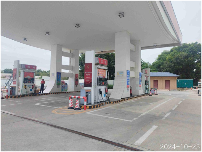中石化森美(福建)石油有限公司漳州龙海龙庄加油站站址位于龙海市榜山镇上苑村省道208线261公里300米,于2024年5月13日经漳州市龙海区市场监督管理局批准取得《营业执照》{统一社会信用代码:91350681731870341L};于2023年03月30日经漳州市应急管理局批准取得《危险化学品经营许可证》,登记编号:闽漳危经〔2016〕00023(换)号,有效期至2025年02月19日;于2023年4月17日经漳州市商务局批准取得《成品油零售经营批准证书》,编号:油零售证书第961138号,有效期至2028年4月16日,许可经营范围:汽油、柴油零售。 该加油站加油罩棚下设有加油机4台(均为4枪),油罐区设有双层埋地卧式储油罐4个。其中,92#汽油罐1个、95#汽油罐1个、98#汽油罐1个、0#柴油罐1个,容积均为30m3,即折合油罐总容积为105m3(柴油罐容积折半计入油罐总容积),根据《汽车加油加气加氢站技术标准》GB50156-2021的等级划分标准,该加油站划为二级加油站。 |