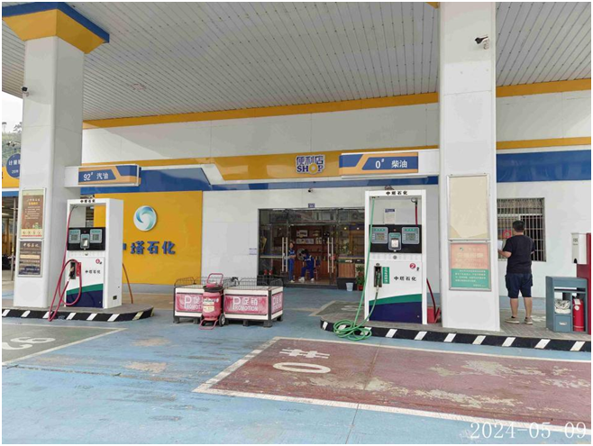 华安县仙都桥东加油站站址位于华安县仙都镇大地村寨仔尾,于2015年11月24日经福建省华安县工商行政管理局批准取得《营业执照》(统一社会信用代码:913506297336225289);于2023年03月30日经漳州市应急管理局批准取得《危险化学品经营许可证》,证书编号:闽漳危经【2015】00074号(换),有效期至2024年08月06日;于2020年08月06日经漳州市商务局批准取得《成品油零售经营批准证书》,编号:油零售证书第963086号,有效期至2025年08月06日,许可经营范围:汽油、柴油零售。 该加油站加油罩棚下设有加油机2台(均为2枪),油罐区设有3个直埋地下卧式常压双层储油罐,其中包括92#、95#汽油罐各1个,罐容均为25m3;0#柴油罐1个,罐容为20m3;折合油罐总容量为60m3(柴油罐容积折半计入油罐总容积),根据《汽车加油加气加氢站技术标准》GB50156-2021的等级划分标准,该加油站划为三级加油站。 |