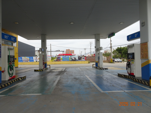 泉州市泉港区隆兴润滑油供销有限公司位于福建省泉州市南埔镇岭口,该公司加油站站区占地面积约2788m2。该加油站北侧为通港路(主干路),东侧为石材堆场,隔石材堆场为泉州市泉港大地石化有限公司加油站(甲类)用地,东南侧为活动板房(三类保护物),南侧为空地,西南侧为石材厂(戊类),西侧为大地燃气停车场(三类保护物),加油站北侧和西侧有架空电力线经过,北侧有架空通信线经过,架空电力线未跨越加油站的作业区。 该加油站已取得泉州市应急管理局核发的《危险化学品经营许可证》,编号:闽泉港危经﹝2004﹞000093(换)号,有效期:2023年4月11日至2026年4月10日。 加油站内设有站房、加油罩棚、油罐区、洗车棚、杂物间等。 该加油站油罐区设有4个埋地卧式SF双层油罐,其中容积均为30m3的0#柴油罐2个,容积为15m3的92#汽油罐1个,容积为15m3的95#汽油罐1个,折合油罐总容积为60m3(柴油罐容积折半计入油罐总容积),为三级加油站。该加油站设有汽油卸油和加油油气回收系统,并于2024年增设三次油气回收装置。该加油站现有从业人员8人。 |