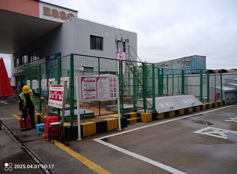 该加油站现有主要设施包括:站房(内设:便利店、办公室、储藏室、配电室、洗手间、值班室、电磁炉厨房等)、一座加油棚、一个埋地油罐区、一台自动洗车机、一个微型消防站遮雨棚、一台箱式变电站(80kVA)、一个危废暂存间。加油棚下设6座加油岛,共设置6台单机6枪加油机。油罐区设有4个埋地卧式油罐,分别为1个30m3柴油罐、3个30m3汽油罐,折合油罐总容积(柴油罐容积折半计入)105m3,为二级加油站。该加油站设有卸油和加油油气回收系统。