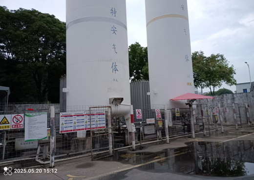 厦门特安实业有限公司气体厂位于厦门市集美区杏林杏南光华路18号,并已取得危险化学品经营许可证,编号:闽厦集危化经字[2019] 000018号,许可范围:氧[压缩的或液化的]、氮[压缩的或液化的]、氩[压缩的或液化的]、二氧化碳[压缩的或液化的]**。 厦门特安实业有限公司气体厂经营范围内的液氧、液氩、液氮、二氧化碳由供货商龙海市明达气体有限公司提供,由龙海市捷邦运输有限公司负责运输至气体厂;气体厂气瓶由厦门友运物流有限公司负责运输,主要销往就近的使用用户。 厂区主要建筑物有:充装间和瓶检间、器材库,值班室。充装间和瓶检间位于厂区西北侧,二者毗邻设置,瓶检间西侧为器材库。厂区东北侧设液态气体储罐区,储罐区内由北向南布设30m3液态二氧化碳储罐、30m3液氧储罐、30m3液氩储罐、50m3液氮储罐,储罐旁设置相应的低温液体泵,储罐东侧由北向南布置氧、氩、氮气化器。储罐北距厂区围墙5m,南距厂区围墙5.26m,东距厂区围墙约8.6m,液氧储罐距充装间12.02m,液态气体储罐区与充装间之间设置槽车卸车道。充装间及瓶检间建筑面积约460m2,充装间内北侧由西向东依次布置二氧化碳灌瓶区、氩气灌瓶区、氮气灌瓶区、氧气灌瓶区,南侧为相应的气瓶存放区(含空瓶和实瓶)。充装间南侧2处出入口外设气瓶装卸平台。厂区出入口位于南侧光华路上,出入口与充装间之间的空地为厂区回车场及气瓶装卸区。 |
