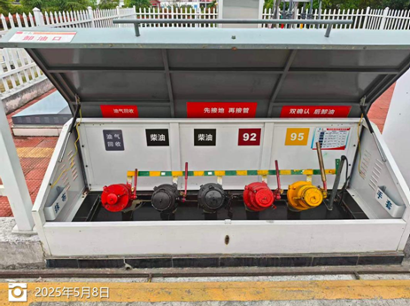 该加油站现有主要设施包括:一座站房(内设:营业房、站长室、更衣室、厕所、配电间等)、一座加油棚、一个埋地油罐区。其中加油棚下设6座加油岛,1#~4#每座加油岛设置1台单机2枪加油机,5#~6#每座加油岛设置1台单机4枪加油机,1台车用尿素加注一体机;油罐区设有4个埋地双层卧式油罐,分别为1个50m3 92#汽油油罐、1个50m3 95#汽油油罐、1个50m3柴油罐和1个50m3停用罐(注水)。该站油品储罐总容积(柴油罐容积折半计入)合计125m3,该站为二级加油站。该站汽油设置卸油和加油油气回收系统及三次油气回收系统。