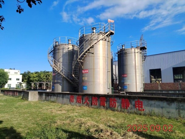 泉州华尔宝树脂有限公司主要从事氯化橡胶胶粘剂2000吨/年、聚氨酯胶粘剂2000吨/年的生产经营,已取得《安全生产许可证》,(闽)WH安许证字[2007]000023(换)号。 该项目厂区位于泉州市泉港区前黄镇工业小区,厂区呈长方形,建设用地面积为18830m2。目前厂区北侧为驿峰西路、隔驿峰西路为荣盛钢结构工程有限公司厂区,厂区西侧为泉州水务集团和福建港盛再生资源科技有限公司厂区,厂区南侧为福建浩睿建材有限公司厂区,厂区东侧为格林重工机械(泉州)有限公司厂区。厂区北侧有一架空电力线经过,东南侧有一架空电力线经过,均未跨越厂区。厂区毗邻驿峰西路、厂区西侧距离2km处为国道324线,交通运输较为便利。 厂区呈长方形,生产区与行政管理区分区布置。行政管理区统一布置于厂区西侧,从北往南依次布置门卫值班室、办公楼、附属楼和倒班宿舍楼。生产区按生产规模和生产特点、原材料性质,从西往东设置一座的单层成品仓库、一座单层原料仓库、一座单层生产车间;立式罐区位于成品仓库南侧,储罐区设置防火堤,堤内设置4座容量均为100m3的立式内浮顶储罐(现储罐已清空停用,断开进出口管道并采用盲板封堵),配套的卸车区及泵区已一并停用;锅炉房及配套的埋地重油罐、重油泵房位于生产车间南侧(现锅炉已拆除停用);容量为350m3的事故收集池位于生产车间南侧;生产辅助区统一布置于厂区东侧,从北往南依次布置循环水池、变配电室和空压机房、发电机房、辅助用房(内设消防泵房、固废间、闲置机房和卫生间)、一座容量为400m3的消防水池、一座单层塑料仓库和车间专用配电房、生物滴滤塔、污水处理场;在厂区西北侧设有一个主出入口、其东侧设有微型消防站,另在厂区东南侧设有一个疏散出口。 |
