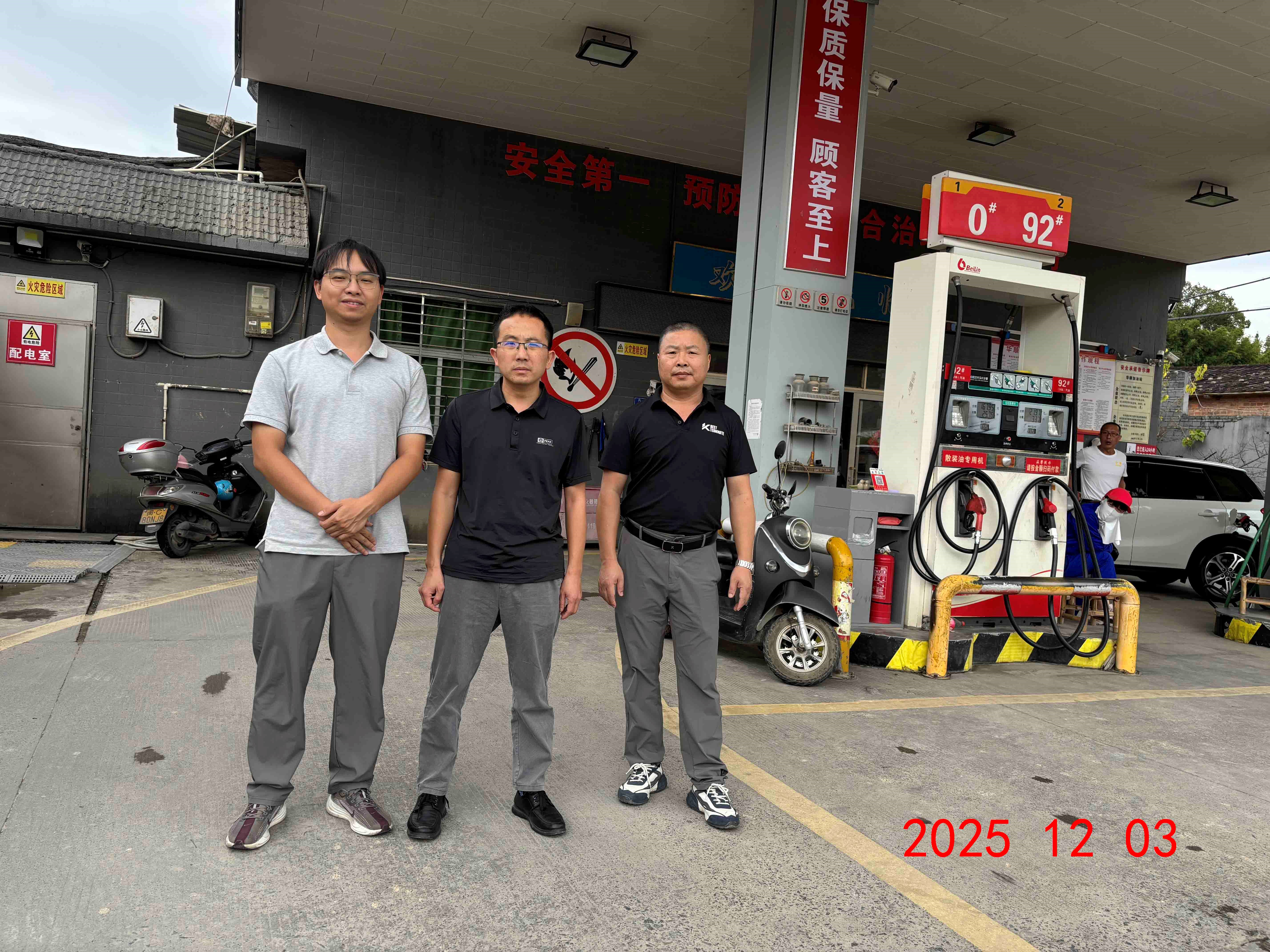 德化县华顺加油站位于德化县浔中镇乐陶村。该加油站西南侧为道路(主干路),南侧为杆装变压器(按丙类物品生产厂房采标),西北侧为闲置石板材厂房(戊类),东北侧为陶瓷加工厂(戊类),东南侧为闲置陶瓷仓库(戊类),加油站西南侧有架空电力线(有绝缘层)和通信线经过,东南侧有架空电力线(有绝缘层)经过,架空电力线均未跨越加油作业区。