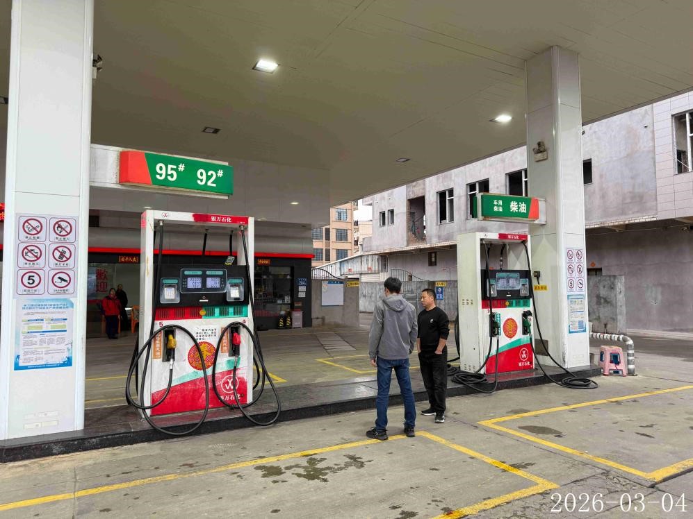 漳浦县银万加油站站址位于福建省漳浦县深土镇丹山大街204号银万石化,于2023年2月16日经漳浦县市场监督管理局批准取得《营业执照》{统一社会信用代码:91350623L00977658Q};于2023年4月4日经漳州市应急管理局批准取得《危险化学品经营许可证》,登记编号:闽漳危经〔2023〕00012号,有效期至2026年4月3日;于2023年4月12日经漳州市商务局批准取得《成品油零售经营批准证书》,编号:油零售证书第963255号,有效期至2028年4月11日,许可经营范围:汽油、柴油零售。 本次勘查现场,该加油站加油罩棚下设有2台加油机(均为5枪),油罐区设有双层卧式储油罐4个,其中包括2个0#柴油罐,容积均为20m3;2个汽油罐,容积均为20m3(其中1个油罐储存92#汽油;另一个油罐按1:1隔仓,分别储存95#、98#汽油,其中98#隔仓罐因销量少现停用);即折合油罐总容积为60m3(柴油罐容积折半计入油罐总容积),根据《汽车加油加气加氢站技术标准》GB50156-2021的等级划分标准,该加油站划为三级加油站。 |