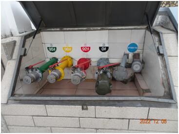 该加油站位于泉州市丰泽区坪山北路,站区占地面积约2500m2。该加油站北侧为山地、隔山地为无限创意仓库(丙类仓库),西侧为山地,东侧为坪山北路;站区南侧为泉州物资贸易有限公司用地,现出租给嗒嗒用车公司使用,其中一座办公楼作为嗒嗒用车公司的办公用房(民用建筑,三类保护物),一座嗒嗒用车公司展厅(三类保护物),并设置有停车位和洗车棚;站区南侧隔物资公司用地为潮汕牛肉火锅城(民用建筑,二类保护物)。加油站南侧有一架空电力线(杆高12m)经过,西南侧有一两端架设于墙体上的架空电力线经过,均未跨越加油站区。 该加油站油罐区设有4个埋地卧式油罐,其中容量为30m3的柴油罐1个,容量为30m3的汽油罐3个,折合油罐总容积为105m3(柴油罐容积折半计入油罐总容积),为二级加油站。该加油站设有汽油卸油和加油油气回收系统。 |