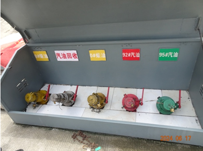 南安市美林南永加油站位于福建省泉州市南安市省新镇油园村油园街356号。该加油站西侧为县道329线(主干路),西北侧有一室外杆式变压器,北侧为民用建筑(三类保护物),东侧为村道和农田(地势落差5m),东南侧为民房(一层为加工坊,二层以上为民房),南侧为民房(三类保护物),加油站西侧有架空电力线和架空通信线经过,加油站东侧有架空电力线经过,均未跨越加油站的作业区。 该加油站原已取得泉州市应急管理局核发的《危险化学品经营许可证》,登记编号:闽泉南危经[2004]000134,有效期:2021年8月26日至2024年8月25日。 该加油站内按功能分区设有站房、加油罩棚、油罐区。 该加油站油罐区设有4个埋地卧式SS双层油罐,其中容量均为30m3的0#柴油罐2个,容量为30m3的92#汽油储罐1个,容量为30m3的95#汽油储罐1个,折合油罐总容积为90m3(柴油罐容积折半计入油罐总容积),为三级加油站。该加油站已设置汽油卸油和加油油气回收系统。 |