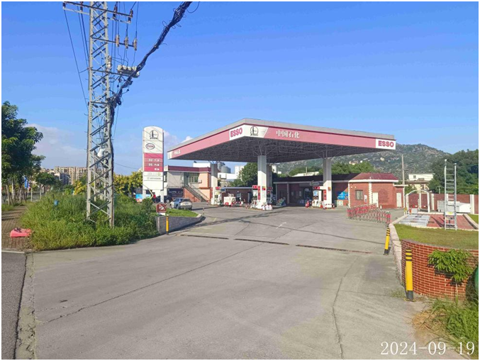 中石化森美(福建)石油有限公司漳州龙海兴宗加油站站址位于龙海市浮宫镇霞圳村,于2024年5月13日经漳州市龙海区市场监督管理局批准取得《营业执照》{统一社会信用代码:9135068166284734XP};于2023年03月30日经漳州市应急管理局批准取得《危险化学品经营许可证》,登记编号:闽漳危经〔2018〕00026(换)号,有效期至2024年12月06日;于2023年4月17日经漳州市商务局批准取得《成品油零售经营批准证书》,编号:油零售证书第963258号,有效期至2028年4月16日,许可经营范围:汽油、柴油零售。 该加油站加油罩棚下设有加油机4台(均为4枪),油罐区设有双层埋地卧式储油罐4个。其中,92#汽油罐1个、95#汽油罐1个、0#柴油罐2个,容积均为30m3,即折合油罐总容积为90m3(柴油罐容积折半计入油罐总容积),根据《汽车加油加气加氢站技术标准》GB50156-2021的等级划分标准,该加油站划为三级加油站。 |