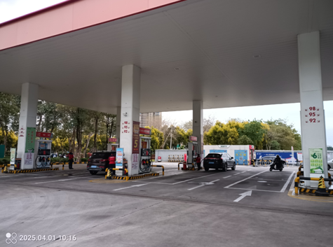 该加油站现有主要设施包括:站房(内设:便利店、办公室、储藏室、配电室、洗手间、值班室、电磁炉厨房等)、一座加油棚、一个埋地油罐区、一台自动洗车机、一个微型消防站遮雨棚、一台箱式变电站(80kVA)、一个危废暂存间。加油棚下设6座加油岛,共设置6台单机6枪加油机。油罐区设有4个埋地卧式油罐,分别为1个30m3柴油罐、3个30m3汽油罐,折合油罐总容积(柴油罐容积折半计入)105m3,为二级加油站。该加油站设有卸油和加油油气回收系统。