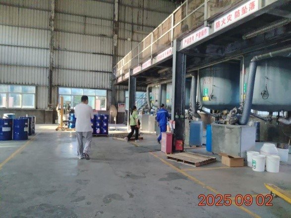 泉州华尔宝树脂有限公司主要从事氯化橡胶胶粘剂2000吨/年、聚氨酯胶粘剂2000吨/年的生产经营,已取得《安全生产许可证》,(闽)WH安许证字[2007]000023(换)号。 该项目厂区位于泉州市泉港区前黄镇工业小区,厂区呈长方形,建设用地面积为18830m2。目前厂区北侧为驿峰西路、隔驿峰西路为荣盛钢结构工程有限公司厂区,厂区西侧为泉州水务集团和福建港盛再生资源科技有限公司厂区,厂区南侧为福建浩睿建材有限公司厂区,厂区东侧为格林重工机械(泉州)有限公司厂区。厂区北侧有一架空电力线经过,东南侧有一架空电力线经过,均未跨越厂区。厂区毗邻驿峰西路、厂区西侧距离2km处为国道324线,交通运输较为便利。 厂区呈长方形,生产区与行政管理区分区布置。行政管理区统一布置于厂区西侧,从北往南依次布置门卫值班室、办公楼、附属楼和倒班宿舍楼。生产区按生产规模和生产特点、原材料性质,从西往东设置一座的单层成品仓库、一座单层原料仓库、一座单层生产车间;立式罐区位于成品仓库南侧,储罐区设置防火堤,堤内设置4座容量均为100m3的立式内浮顶储罐(现储罐已清空停用,断开进出口管道并采用盲板封堵),配套的卸车区及泵区已一并停用;锅炉房及配套的埋地重油罐、重油泵房位于生产车间南侧(现锅炉已拆除停用);容量为350m3的事故收集池位于生产车间南侧;生产辅助区统一布置于厂区东侧,从北往南依次布置循环水池、变配电室和空压机房、发电机房、辅助用房(内设消防泵房、固废间、闲置机房和卫生间)、一座容量为400m3的消防水池、一座单层塑料仓库和车间专用配电房、生物滴滤塔、污水处理场;在厂区西北侧设有一个主出入口、其东侧设有微型消防站,另在厂区东南侧设有一个疏散出口。 |