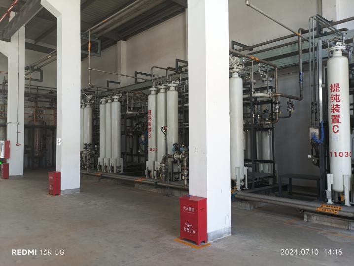 该项目于2021年3月31日取得《福建省投资项目备案证明(内资)》,包括2个子项目,一是氢气纯化与充装项目以及厂外氢气管线(管道长1392m,年输送氢气2400×104Nm3);二是特气项目。2个子项目分属在不同的地块,在空间和工艺上是相互独立的,无相关管道连接。二期扩建氢气项目位于福州江阴港城经济区高港大道1号,在原有厂区内,属扩建项目,占地面积31134㎡(约46.7亩);特气项目位于福州江阴港城经济区顺宝路与秀中路交叉口东南侧,为新建厂区,属新建项目,占地面积24997㎡(约37.46亩)。主要建设内容及规模如下: (一)二期扩建氢气项目: (1)厂外氢气管线:建设一根美得石化至久策气体的氢气管道,年输送氢气量为2400×104Nm³/a; (2)氢气提纯:新增年提纯氢气(6N)2337×104Nm3; (3)仓储经营:新增瓶装氧气、氮气、氩气、氦气、空气、硅烷、羰基硫等仓储经营,储存于甲类仓库A内。 (二)特气项目: (1)气体提纯:新增年提纯甲烷(5N)240t、溴化氢(5N)1000t、氯化氢(5N)520t、二氧化碳(5N)4960t、乙烯(5.5N)160t、丙烯(4N)160t、六氟丁二烯1000t、消毒气(环氧乙烷+CO2混合灭菌气体)1200t、干冰3280t; (2)二氟系列:新增年生产二氟乙酸乙酯2000t(自用消耗730t)、二氟乙酰乙酸乙酯300t、一氟甲烷584t(提纯电子级300t)、乙酰乙酸乙酯37.5t。 其中:氢气(6N)、甲烷(5N)、溴化氢(5N)、氯化氢(5N)、二氧化碳(5N)、乙烯(5.5N)、丙烯(4N)、六氟丁二烯、消毒气(环氧乙烷+CO2混合灭菌气体)、二氟乙酸乙酯、乙酰乙酸乙酯、一氟甲烷属于危险化学品,需办理危险化学品安全生产许可;瓶装氧气、氮气、氩气、氦气、硅烷、羰基硫属于危险化学品,需办理危险化学经营许可证。 该项目采用的工艺路线具有工艺成熟、原料充足、产品质量稳定且安全可靠等优点,各工艺在国内生产企业有成功可借鉴的操作经验,属成熟工艺。其中,二氟乙酸乙酯产品生产过程中的裂解反应属于重点监管的危险化工工艺(裂解工艺),其他生产工艺不属于重点监管的危险化工工艺。该项目涉及的氢气、乙炔、一氧化碳、甲烷、乙烯、丙烯、环氧乙烷、乙酸乙酯、天然气属于重点监管危险化学品。 久策气体(福清)有限公司二期扩建及特气项目的建设符合国家和当地政府产业政策与布局要求,外部安全防护距离满足风险基准的要求。二期扩建及特气项目试生产后具备国家现行有关安全生产法律、法规和部门规章及标准规定和要求的安全生产条件,符合建设项目安全设施竣工验收条件。 |