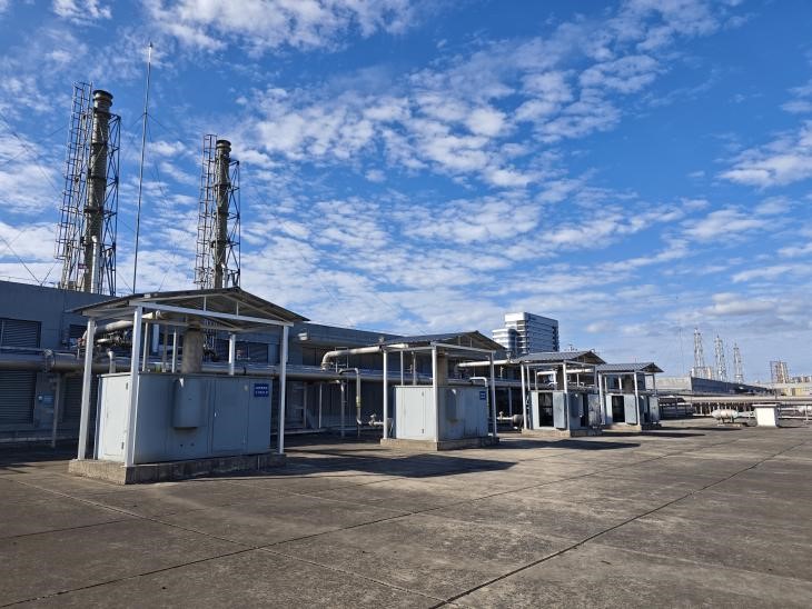 该公司氨水回收生产线布置在1#外延厂房及2#外延厂房的屋顶。其中1#外延厂房屋顶布置5条氨水回收生产线,2#外延厂房屋顶布置4条氨水回收生产线。