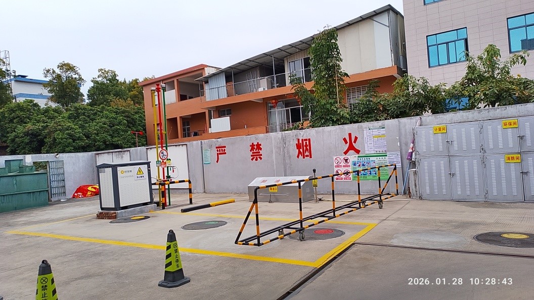 该加油站位于南安市洪濑镇谯琉村省道307线55公里750米处,站区占地面积约950m2。该加油站东侧为省道307线(主干路),北侧为他人厂房(绣花厂,丙类厂房)、民用建筑(三类保护物)和停车棚(三类保护物),西北侧为绣花厂杂物间(三类保护物),西侧和西南侧为民用建筑(三类保护物),南侧为村道、隔村道为民用建筑(三类保护物)。站区南侧为进站的架空电力线经过,未跨越加油作业区(加油站站区总平面布置情况见附图)。 该加油站内按功能分区设有站房、加油罩棚、油罐区;发电机房和配电间设于站房内。 该加油站油罐区设有4个埋地卧式双层油罐,其中容量为20m3的0#柴油罐1个,容量为30m3的92#汽油罐1个,容量为30m3的95#汽油罐1个,容量为30m3的停用罐1个(原储存0#柴油,现已注水停用),折合油罐总容积为70m3(柴油罐容积折半计入油罐总容积,停用罐容积未计入总容积),为三级加油站。该加油站设有汽油卸油和加油油气回收系统。 |